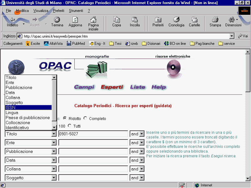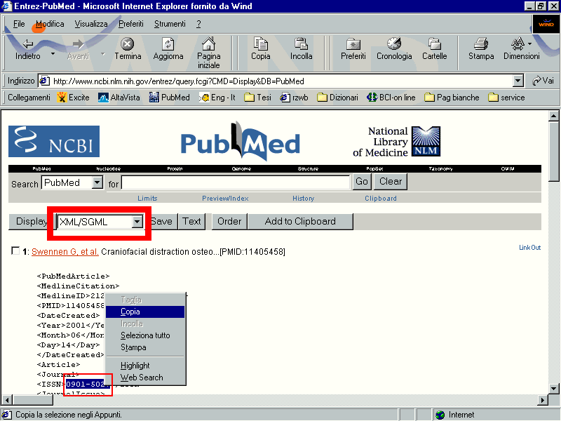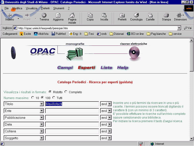 - su MEDLINE ( http://www.ncbi.nlm.nih.gov/entrez/query.fcgi ):
